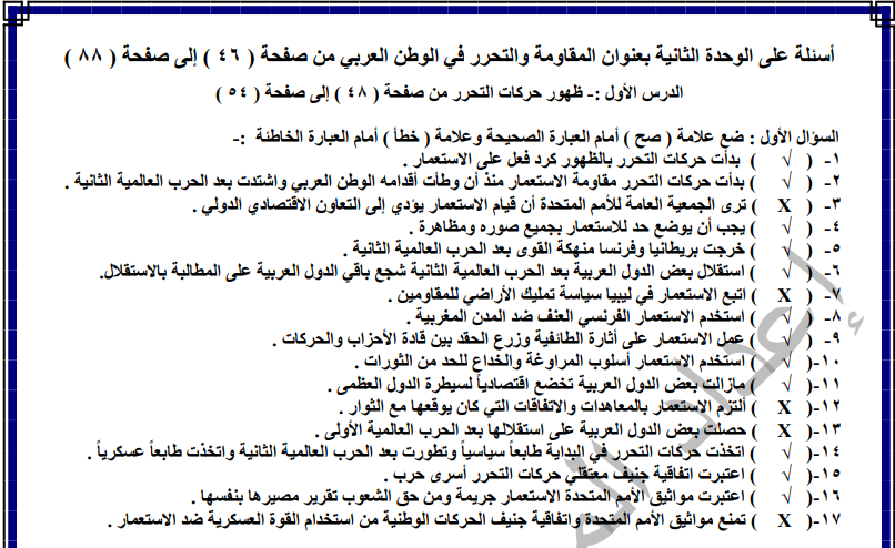 أسئلة مجابة وهامة لدرس ظهور حركات التحرر للدراسات الاجتماعية تاسع