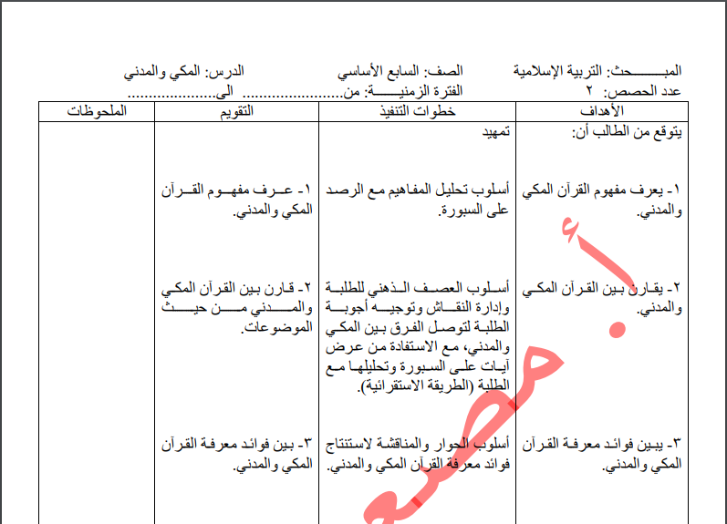 إعداد مميز لدروس التربية الإسلامية للصف السابع الفصل الأول