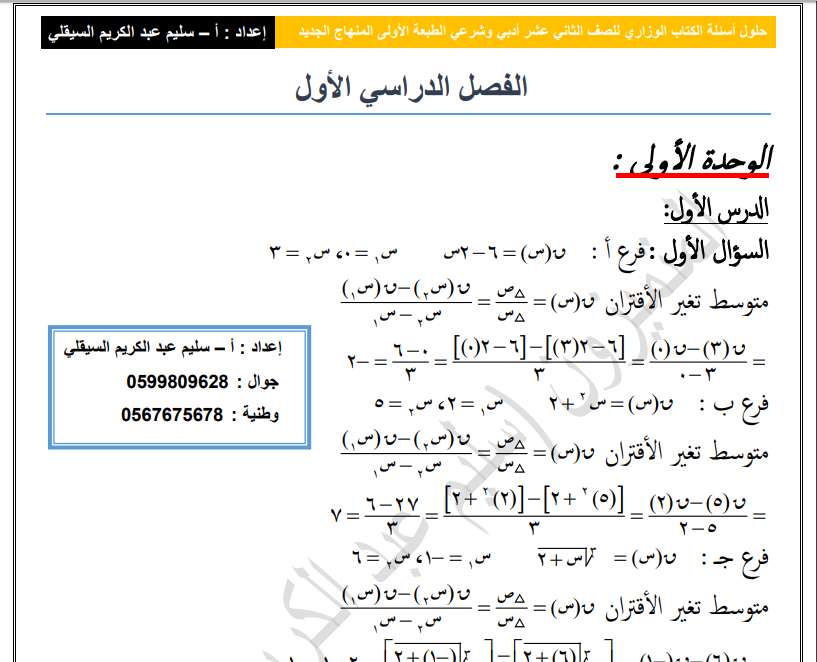 ضمن حرصنا على تقديم ما يخرج طالبا متميزاً ، فقد أحضرنا لكم اليوم الإجابات النموذجية لمبحث رياضيات التوجيهي الأدبي والشرعي الجديد ، ونرجو أن ينال إعجابهم هذا الموضوع النابع من حرصنا على خدمتكم وخدمة المسيرة التعليمية ، يا معلمينا الأعزاء من حرصنا على مصلحتكم نضع لكم هذا المحتوى التعليمي المميز والرائع ليساعدكم على القيام بالوظائف التعليمية بشكل يضمن لكم درجات عالية في المواد الدراسية يضمن هذا المحتوى الارتقاء بالمستوى التعليمي في مدارسنا ، مما ينعكس على مستويات الطلاب التحصيلية ويعينهم على الدراسة لتحصيل درجات عالية في المواد الدراسية المطروحة والمعمول بها في مدارسنا إننا نرى أهمية بالغة لهذا المحتوى للمعلمين الكرام والمعلمات الكريمات في أداء حصصهم المدرسية على أكمل وجه .