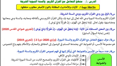 ملخصات ومراجعات مهمة واختبارات نهائية مجابة لمبحث التربية الإسلامية للتوجيهي