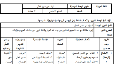 خطة فصلية مقترحة لمبحث اللغة العربية للصف السابع الفصل الأول
