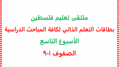 بطاقات التعلم الذاتي للأسبوع التاسع لكافة المباحث الدراسية للصفوف 1-9
