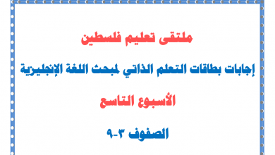 إجابات بطاقات التعلم الذاتي لمبحث اللغة الإنجليزية للأسبوع التاسع للصفوف 3-9