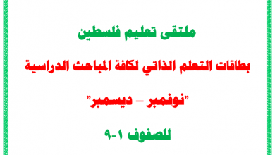 بطاقات التعلم الذاتي لشهر نوفمبر وديسمبر لكافة المباحث الدراسية للصفوف 1-9