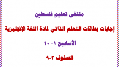 إجابات بطاقات التعلم الذاتي لمادة اللغة الإنجليزية حتى الأسبوع الثامن للصفوف 3-9