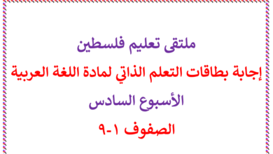 إجابات بطاقات التعلم الذاتي للأسبوع السادس لمبحث اللغة العربية للصفوف 1-9