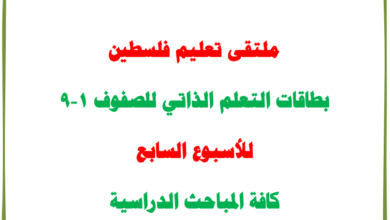 بطاقات التعلم الذاتي للأسبوع السابع لكافة المباحث الدراسية للصفوف 1-9