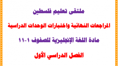 المراجعات النهائية وامتحانات الوحدات لمبحث اللغة الإنجليزية للصفوف 1-11 الفصل الأول