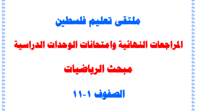 المراجعات النهائية وامتحانات الوحدات الدراسية لمادة الرياضيات للصفوف 1-11 الفصل الأول