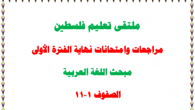 امتحانات ومراجعات مهمة لنهاية الفترة الأولى لمبحث اللغة العربية للصفوف 1-11