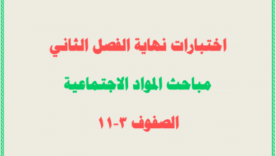 امتحانات نهاية الفصل الثاني الرائعة لمباحث المواد الاجتماعية للصفوف 1-11