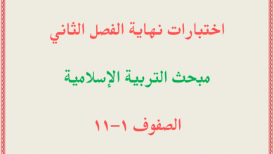 امتحانات نهاية الفصل الثاني الرائعة لمبحث التربية الإسلامية للصفوف 1-11