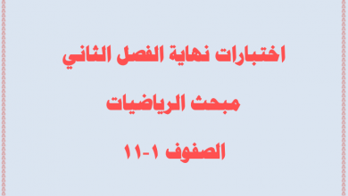 امتحانات نهاية الفصل الثاني الرائعة لمبحث الرياضيات للصفوف 1-11