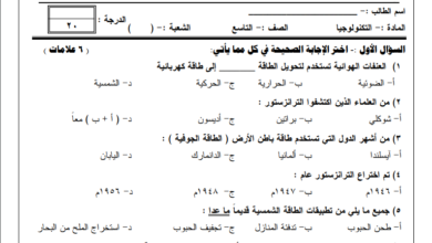 امتحانات رائعة وهامة لنصف الفصل الثاني لمبحث التكنولوجيا للصف التاسع