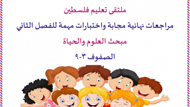 مراجعات مجابة وامتحانات نهاية الفصل الثاني لمبحث العلوم للصفوف 3-9