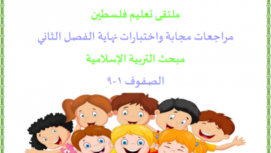 مراجعات مجابة وامتحانات نهاية الفصل الثاني لمبحث التربية الإسلامية للصفوف 1-9